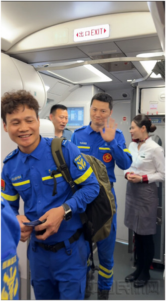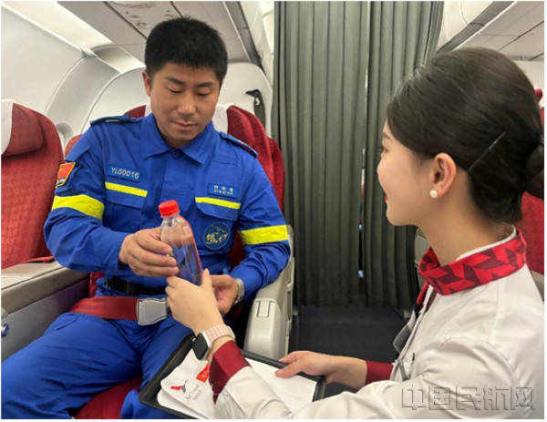 “在危难时刻你们无畏逆行,用专业与担当守护生命,用汗水与信念点亮希望”当航班进入平飞阶段,乘务组通过机上广播向蓝天救援队员们表达崇高敬意,广播未毕,客舱内就已响起热烈掌声,旅客们纷纷为这群“逆行英雄”点赞鼓掌。