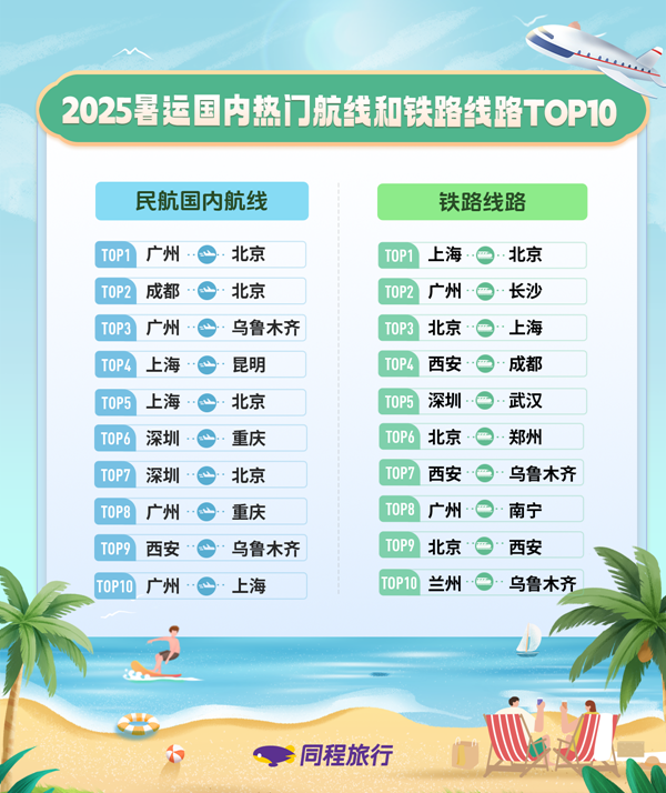 《中国民航报》、中国民航网 记者许晓泓 报道:6月17日,2025暑运首日(7月1日)的火车票正式开售,相关线路的机票预订热度也随之快速攀升。6月18日,同程旅行发布的《2025暑运出行趋势报告》(下称《报告》)显示,从6月17日开始,暑运机票及火车票迎来预订高峰。