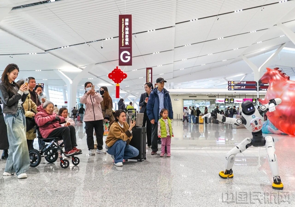 现场旅客纷纷驻足互动、合影留念,在沉浸式体验中定格节日美好,开启温馨出行旅程。西安咸阳机场公司结合当下热门人工智能科技,打造机场场景下的差异化节日记忆点,既让旅客感受科技新奇,又收获满满温情,实现 “互动有乐趣、礼遇有温度”,彰显西安咸阳机场人文服务底色,提升旅客出行幸福感。
