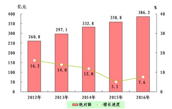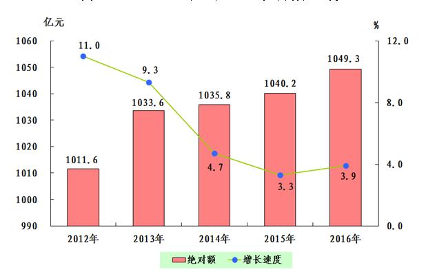 图1:2012—2016年全市生产总值及增长速度