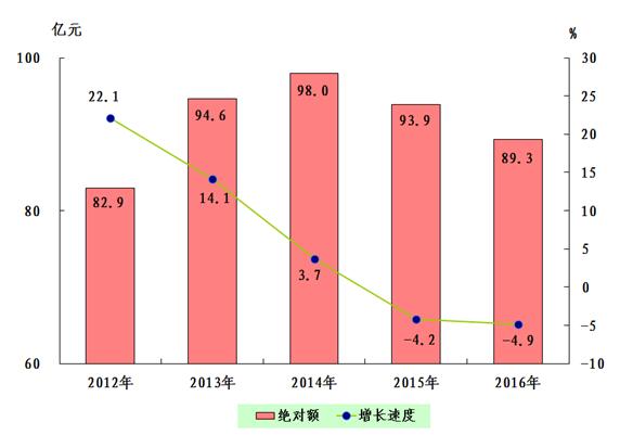 初步核算,全年全市生产总值1049.3亿元,按可比价格计算,比上年增长3.9%。其中,第一产业增加值49.8亿元,增长0.6%,占生产总值的比重为4.7%;第二产业增加值554.9亿元,增长2.4%,占生产总值的比重为52.9%;第三产业增加值444.6亿元,增长6.3%,占生产总值的比重为42.4%。第三产业中,金融保险业增加值68.7亿元,增长7.5%;交通运输、仓储和邮政业增加值76.1亿元,增长11.4%;批发和零售业增加值62.3亿元,增长3.0%;住宿和餐饮业增加值30.7亿元,增长7.8%;营利性服务业增加值45.7亿元,增长11.7%。人均地区生产总值45271元,按2016年平均汇率计算为6815美元。