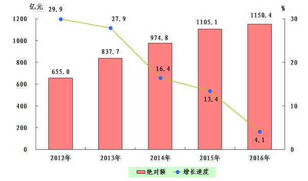图7:2012-2016年外贸进出口总额及增长速度