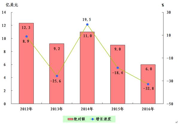 全年全市海关进出口总额6.0亿美元,下降32.8%。其中,进口额4.34亿美元,下降28.1%;出口额1.65亿美元,下降42.8%。