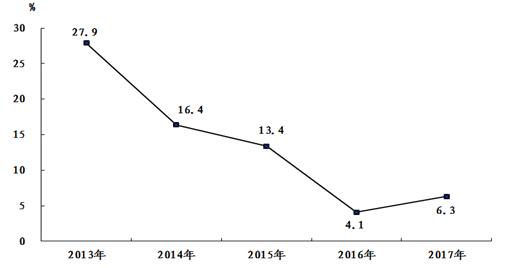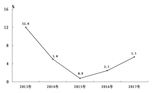年末全市规模以上工业企业242家。全年规模以上工业增加值比上年增长5.5%。图4:2013-2017年规模以上工业增加值增长速度