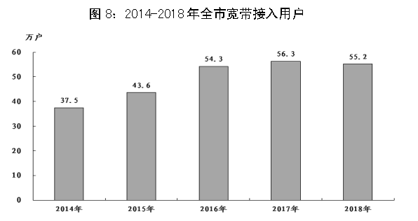 全年全市完成邮电业务总量68.8亿元。其中,邮政业务总量1.4亿元;电信业务总量67.4亿元。年末移动电话用户268万户,全市宽带接入用户55.2万户。
