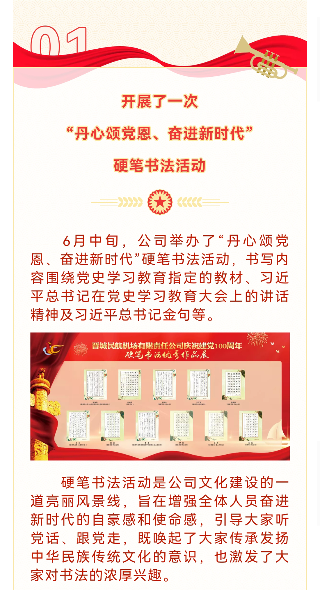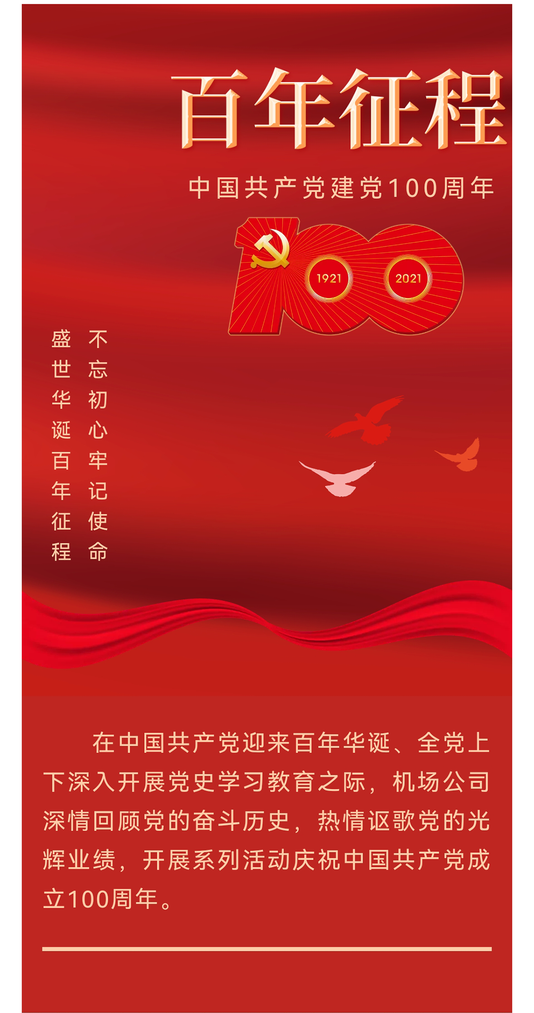 在中国共产党迎来百年华诞、全党上下深入开展党史学习教育之际,机场公司深情回顾党的奋斗历史,热情讴歌党的光辉业绩,开展系列活动庆祝中国共产党成立100周年。
