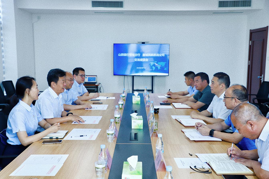 7月11日上午,山西银行晋城分行行长张建国一行与机场公司举行交流座谈会议,了解机场进展和投资建设模式,双方就银企合作等方面进行了深入交流。