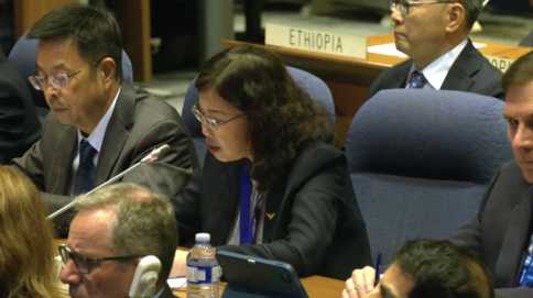 中国民用航空局副局长梁楠在大会上发言(国际民航组织官网直播画面)